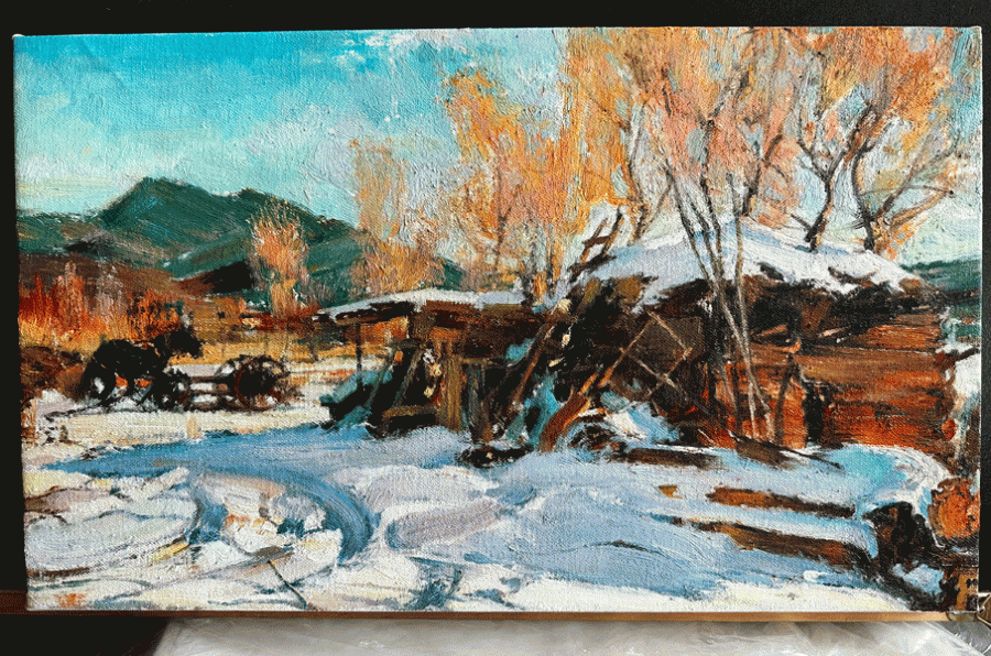 印象油畫-風景雪景